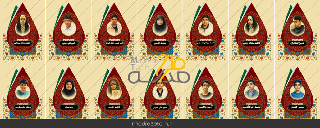 - متنهای آماده و قابل ویرایش: شعارها، اسامی شهدا و تاریخها به صورت قابل تغییر قرار دارند.