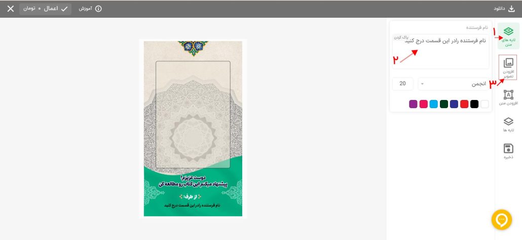 برای ویرایش آنلاین این طرح کافیه ایم مراحل رو بروید: