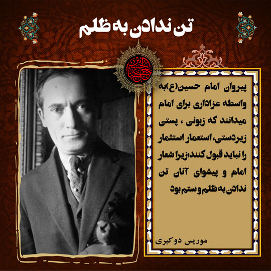عکس نوشته نظر موریس دوکبری در مورد امام حسین