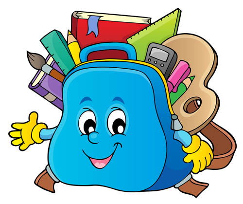 وکتور لایه باز کیف مدرسه با لوازم