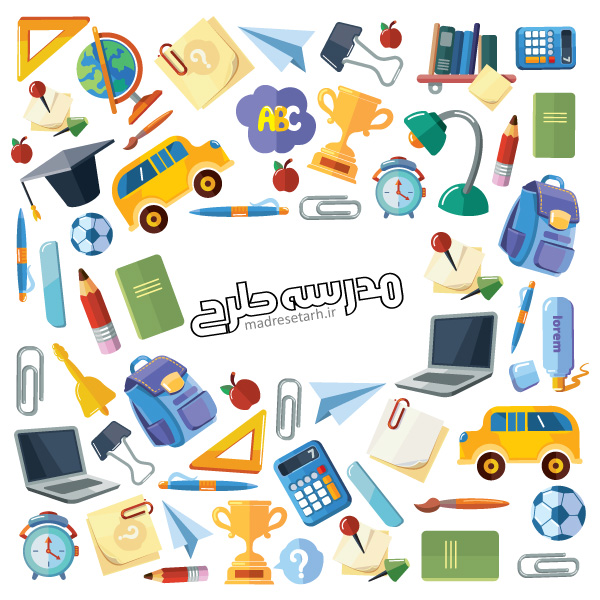 وکتور لایه باز لوازم دانش آموزی مدرسه