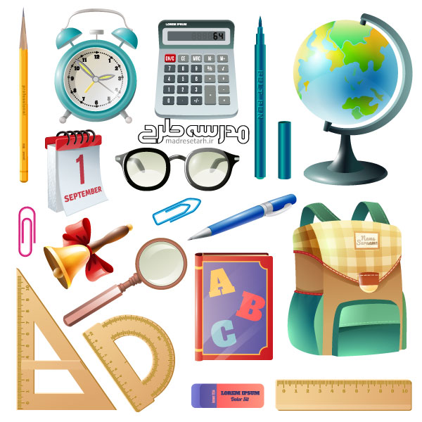 وکتور لایه باز وسایل آموزشی مدرسه